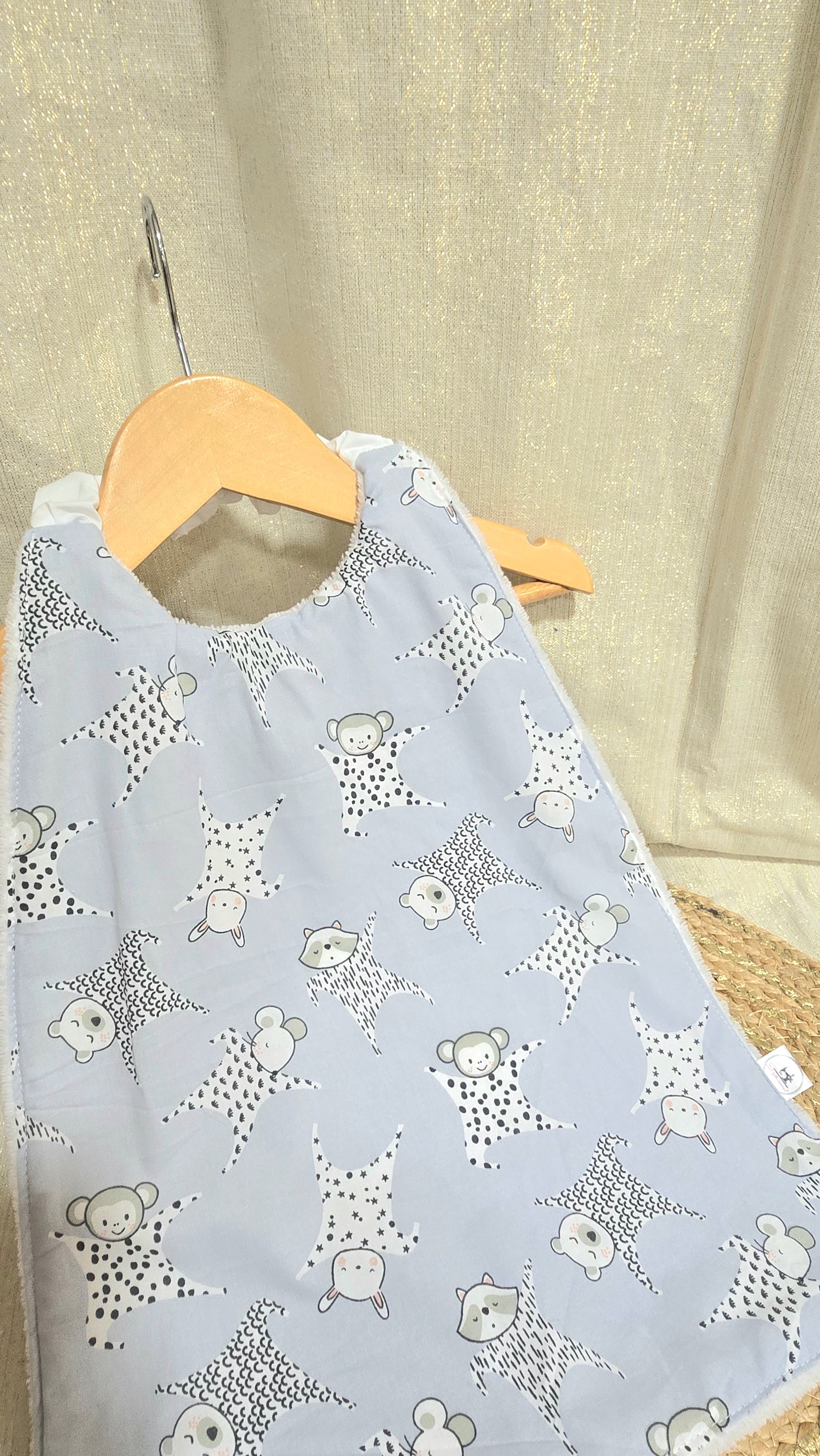Ce modèle est prêt à être expédié, cousu dans mon atelier en Normandie à partir de tissus doux et certifiés Oeko-Tex, sans substances nocives.