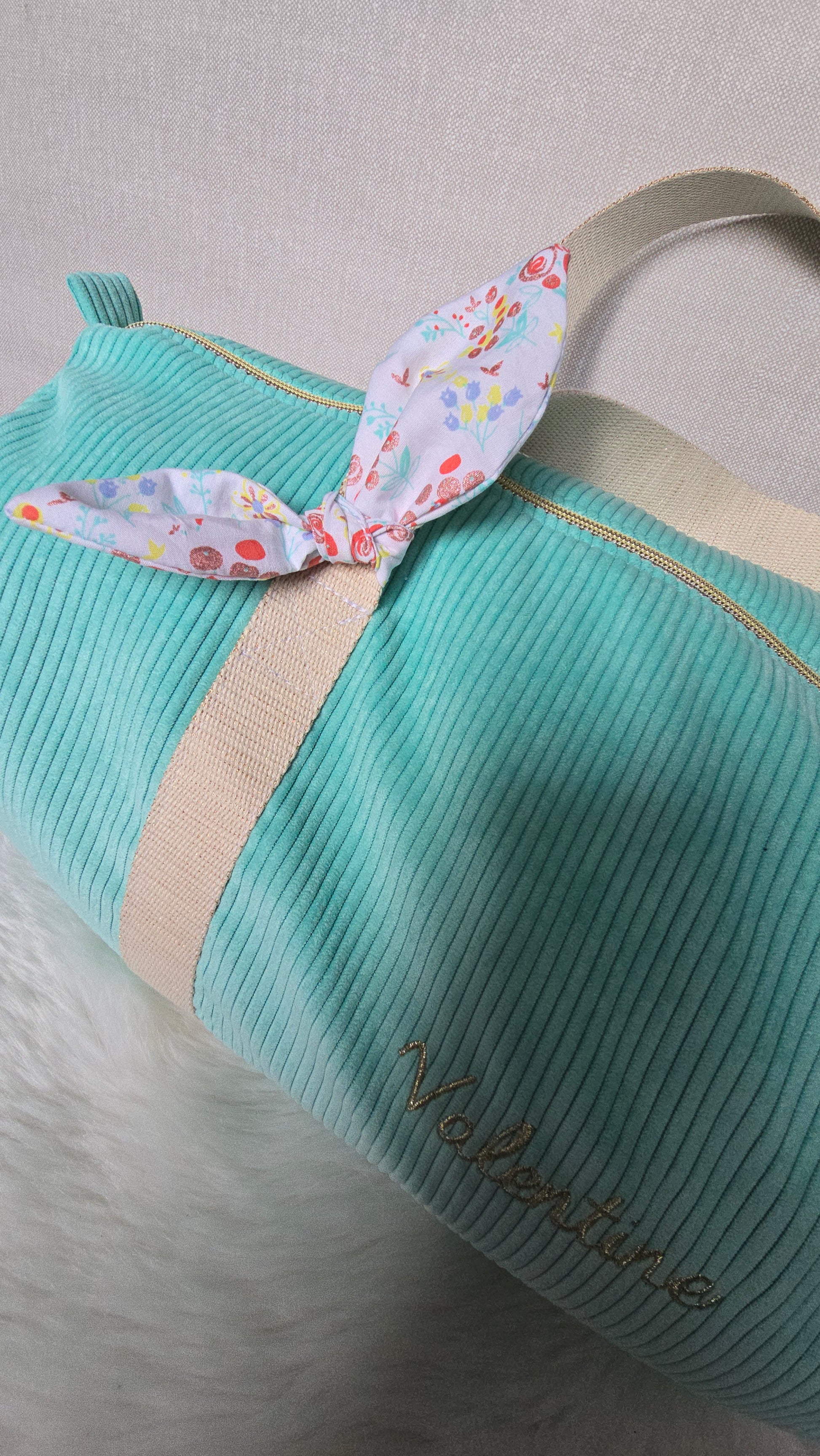 Dans cette version entièrement personnalisable, vous choisissez les tissus selon vos envies, et vous pouvez ajouter une broderie prénom, initiales ou petit mot doux, pour une création à votre image.