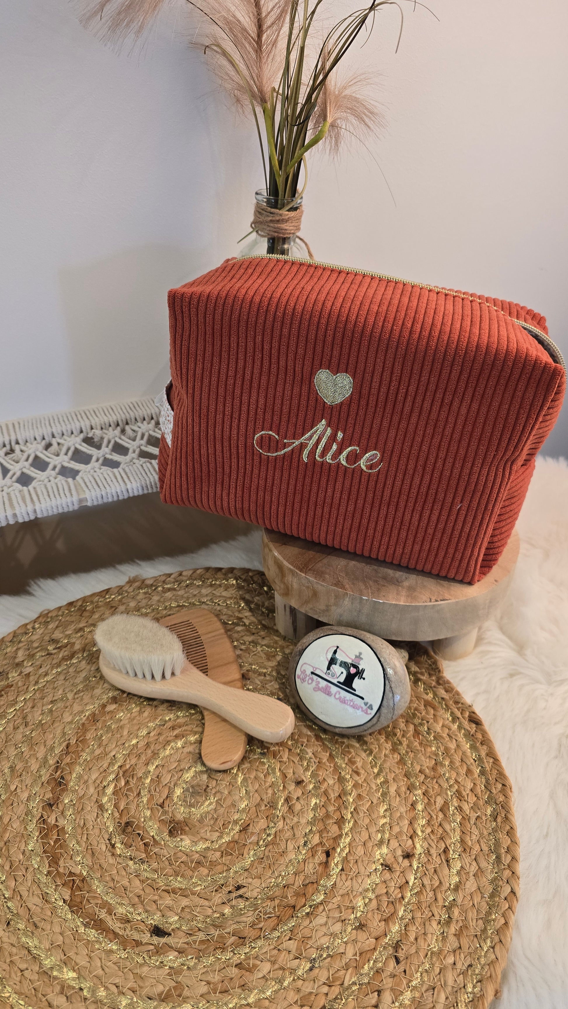 Fabriquée dans mon atelier normand avec des matériaux Oeko-Tex, elle convient parfaitement comme trousse de toilette bébé, enfant, ado ou femme élégante.
